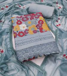Grey embroidered cotton semi stitched churidar dress-materials