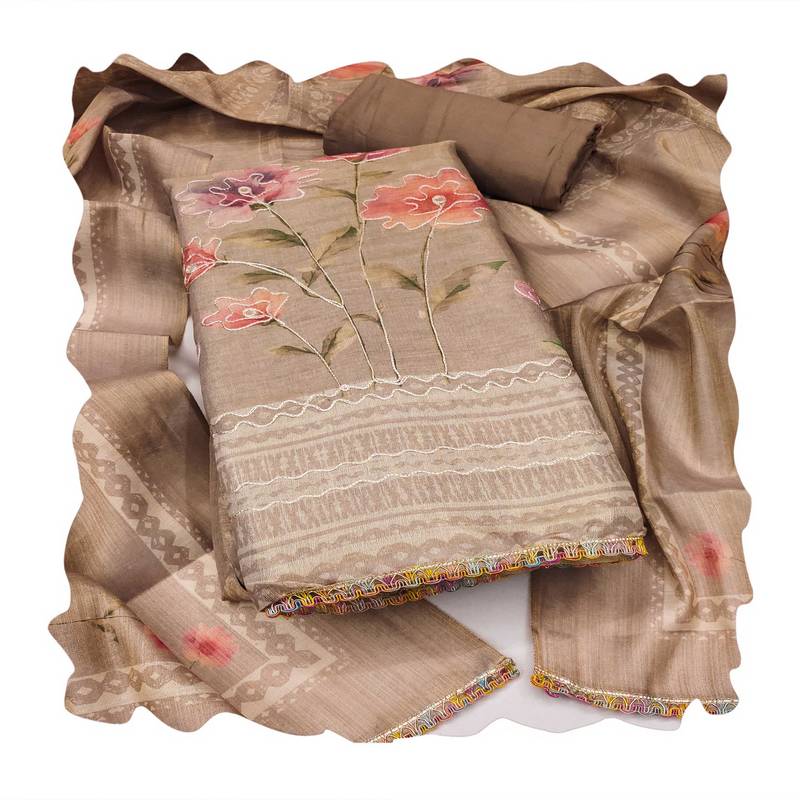 | Product Description | Regal Designer Print Embroidery And Fancy Border With Stylish Printed Dupatta Straight Style 2.00 Mtr Unstitched Dress Material Top Of Grey Colour Simmer Cotton Silk Fabric Also Including 2.40 Mtr Chudidar Style Bottom Piece Material Of Grey Colour Rayon Fabric With 2.10 Mtr Dupatta Of Grey Colour Simmer Cotton Silk Fabric By Shadow & Saining Brand |