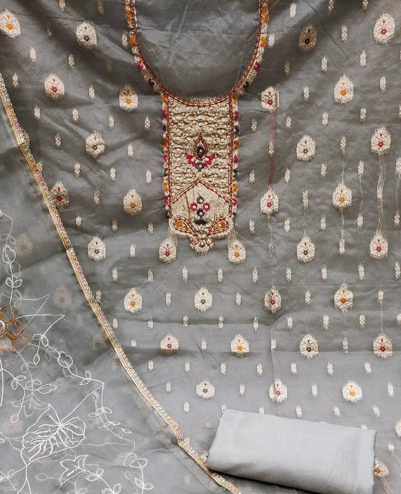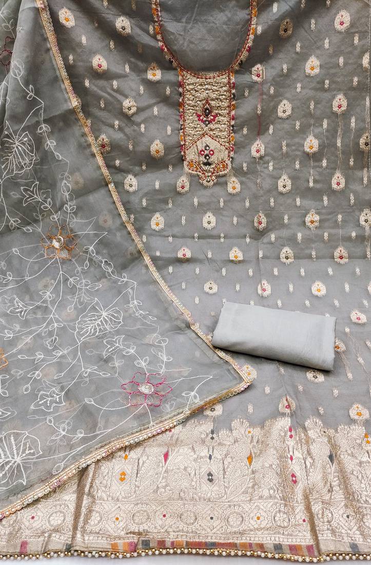Grey organza woven dress material unstitched