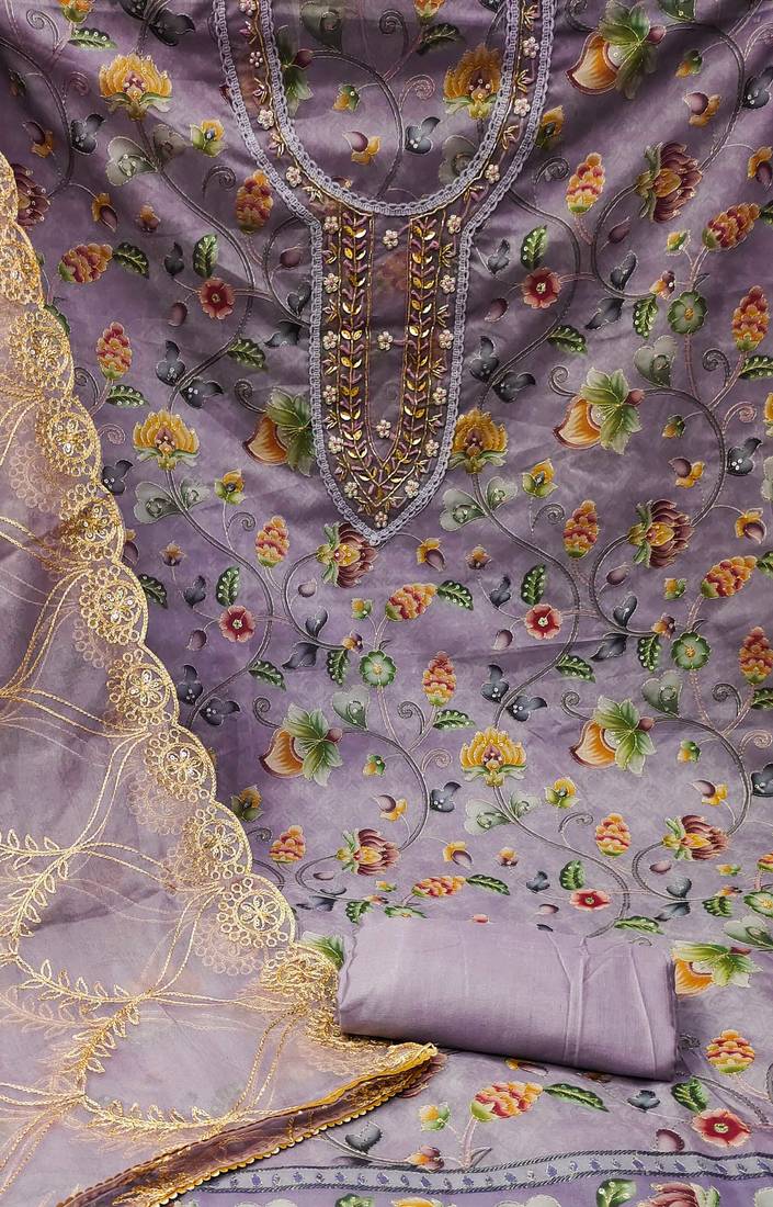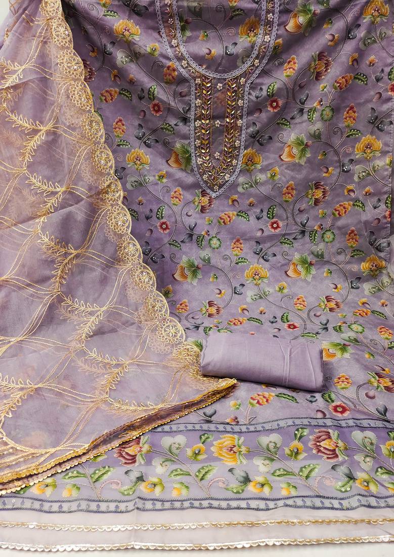 | Product Name | Lavender Organza Embroidered Dress Material | |