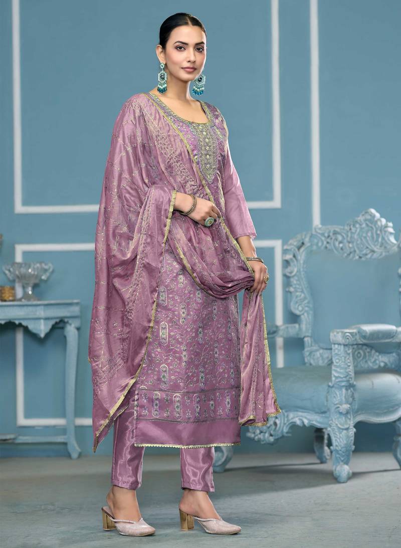| Product Name | Lavender Sequins Organza Semi Stitched Churidar Dress Materials | |