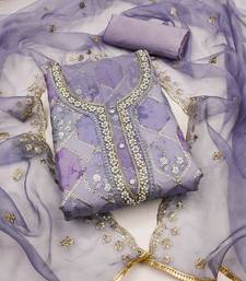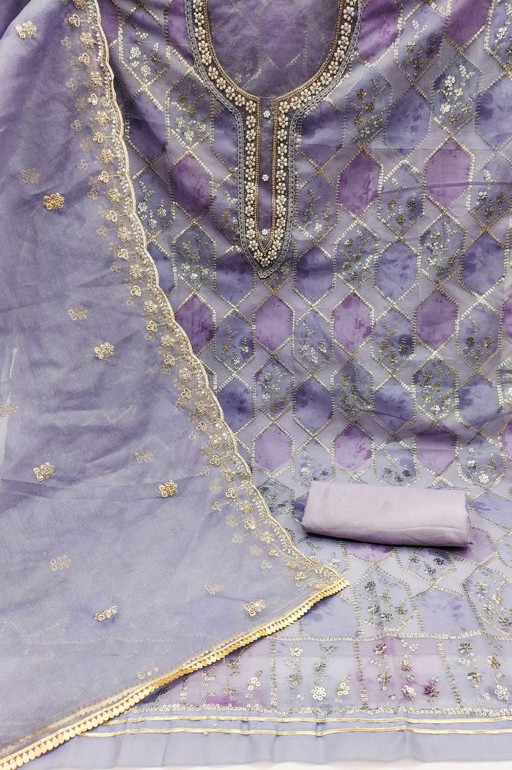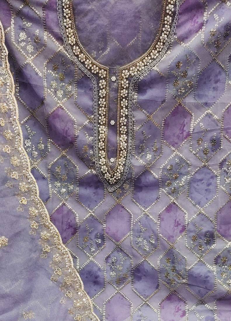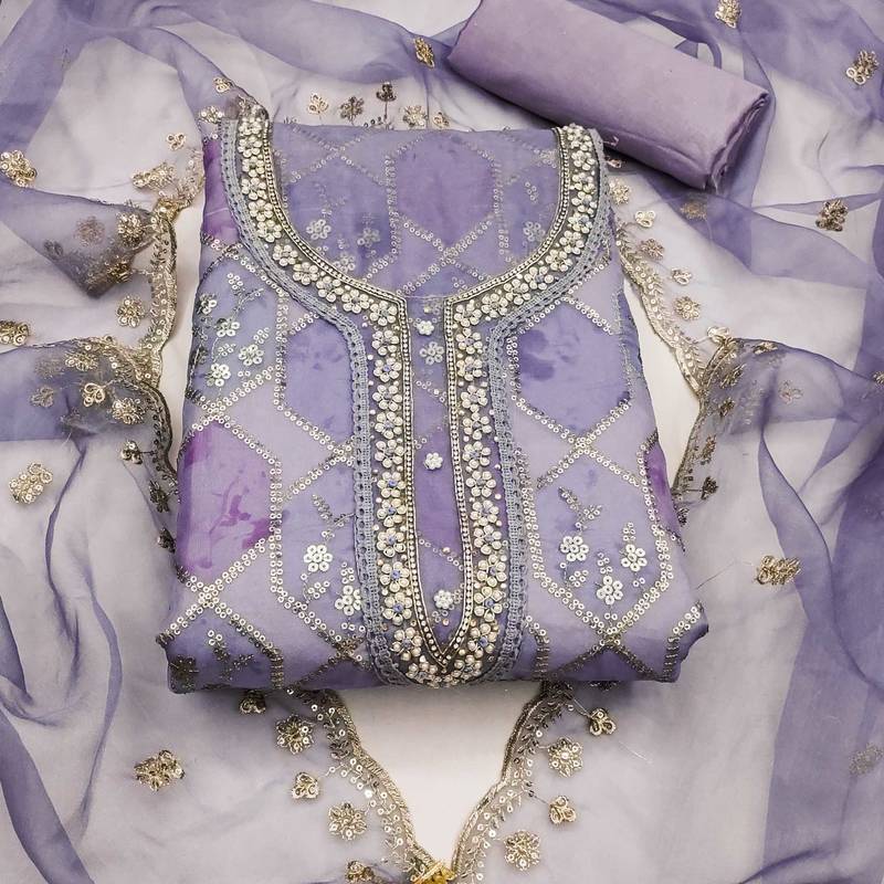 Lavender organza sequins dress material unstitched