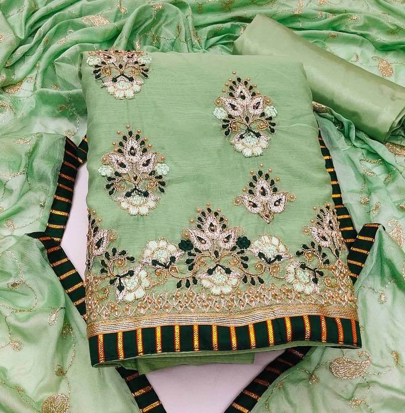 | Product Name | Light Green Chanderi Embroidered Dress Material | |