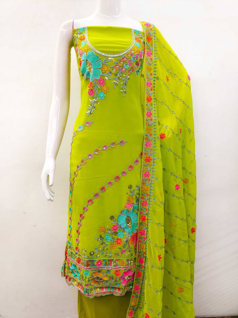 light green georgette embroidered dress material
