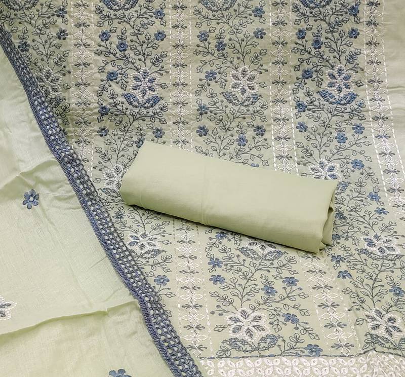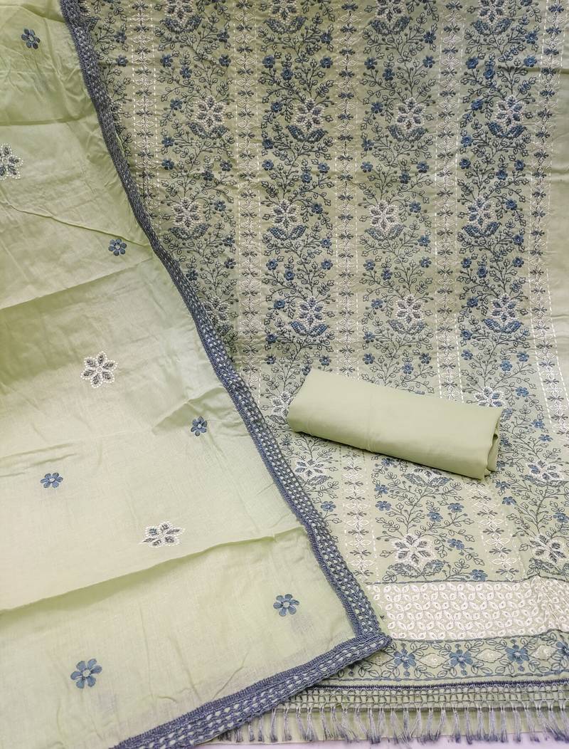 | Product Description | Appealing Heavy Thread Embroidery With Embroidered Dupatta Straight Style 1.80 Mtr Unstitched Dress Material Top Of Lightgreen Colour Cotton Fabric Suggestable Quarter Style Sleeves And Round Style Neck Also Including 2.00 Mtr Chudidar Style Bottom Piece Material Of Lightgreen Colour Cotton Fabric With 2.00 Mtr Dupatta Of Lightgreen Colour Cotton Fabric |