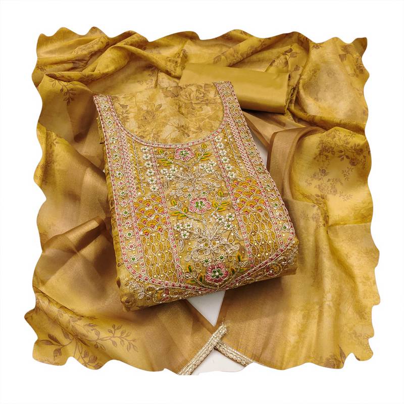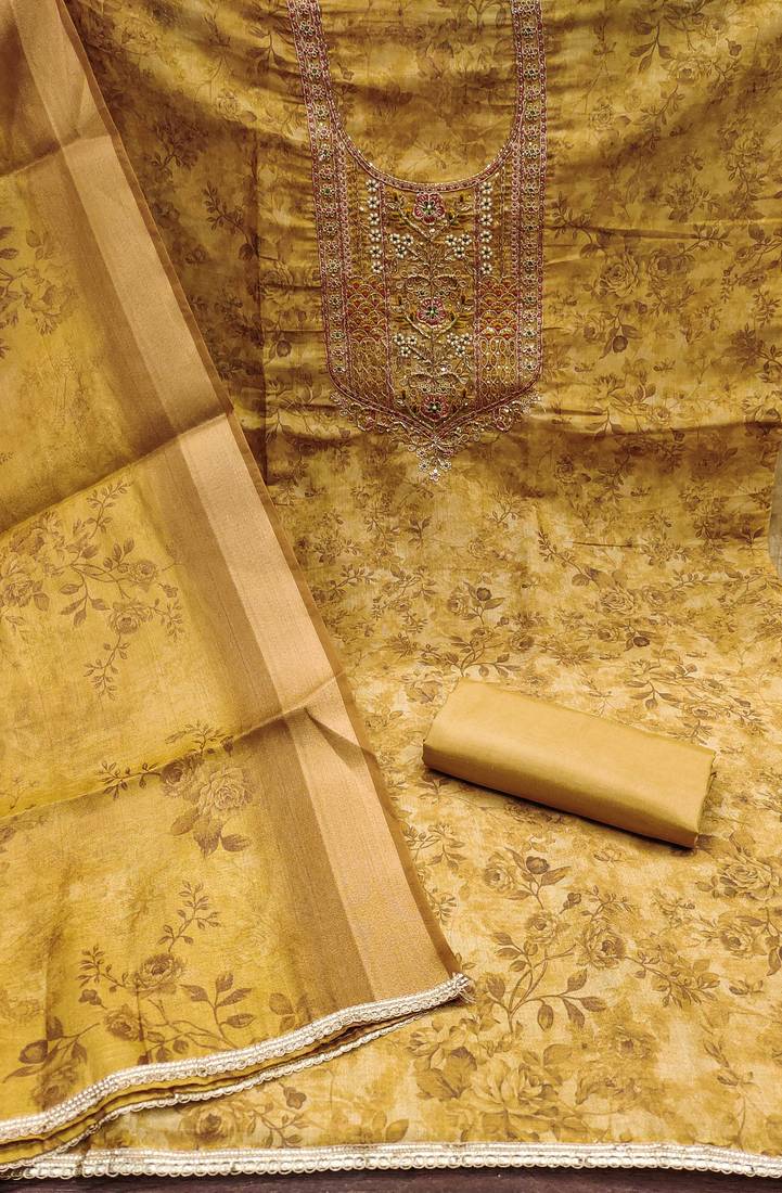 | Product Description | Minimal Designer Print, Heavy Handwork And Fancy Border With Stylish Digital Printed Dupatta Straight Style 2.00 Mtr Unstitched Dress Material Top Of Light Green Colour Cotton Silk Fabric Also Including 2.40 Mtr Chudidar Style Bottom Piece Material Of Mehandi Colour Dull Santoon Fabric With 2.10 Mtr Dupatta Of Light Green Colour Cotton Silk Fabric By Shadow & Saining Brand |