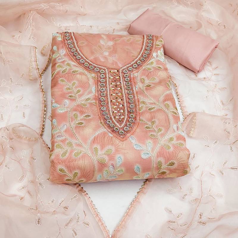 | Product Name | Light Peach Organza Embroidered Dress Material | |