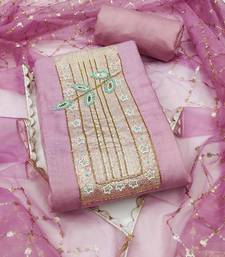 Light-purple hand embroidery cotton semi stitched churidar dress-materials