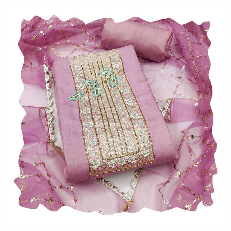 | Product Description | Everyday Essential Heavy Handwork And Fancy Border With Designer Embroidered Dupatta Straight Style 2.00 Mtr Unstitched Dress Material Top Of Light Purple Colour Pure Cotton Banarasi Fabric Also Including 2.40 Mtr Chudidar Style Bottom Piece Material Of Light Purple Colour Rayon Fabric With 2.10 Mtr Dupatta Of Light Purple Colour Organja Fabric By Shadow & Saining Brand |