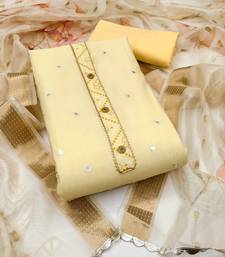Light-yellow embroidered cotton silk semi stitched churidar dress-materials