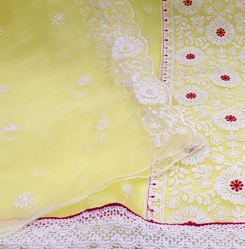 | • | Dupatta | : | Color- Light Yellow / Fabric- Organza |
