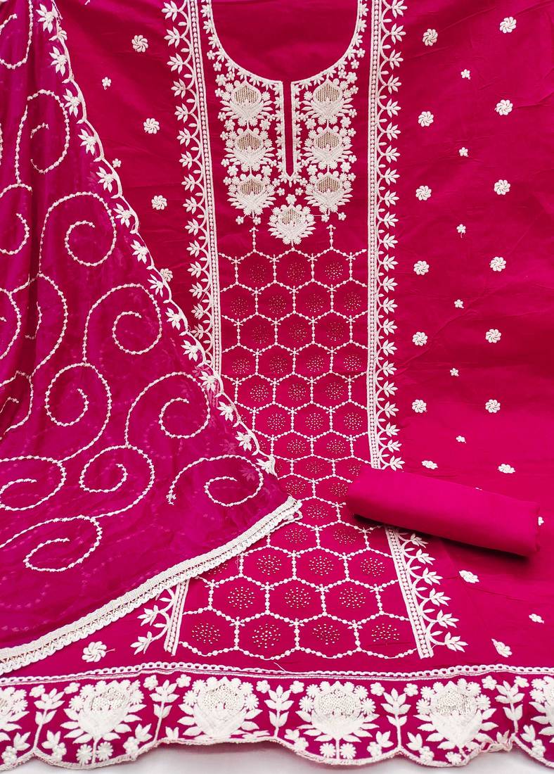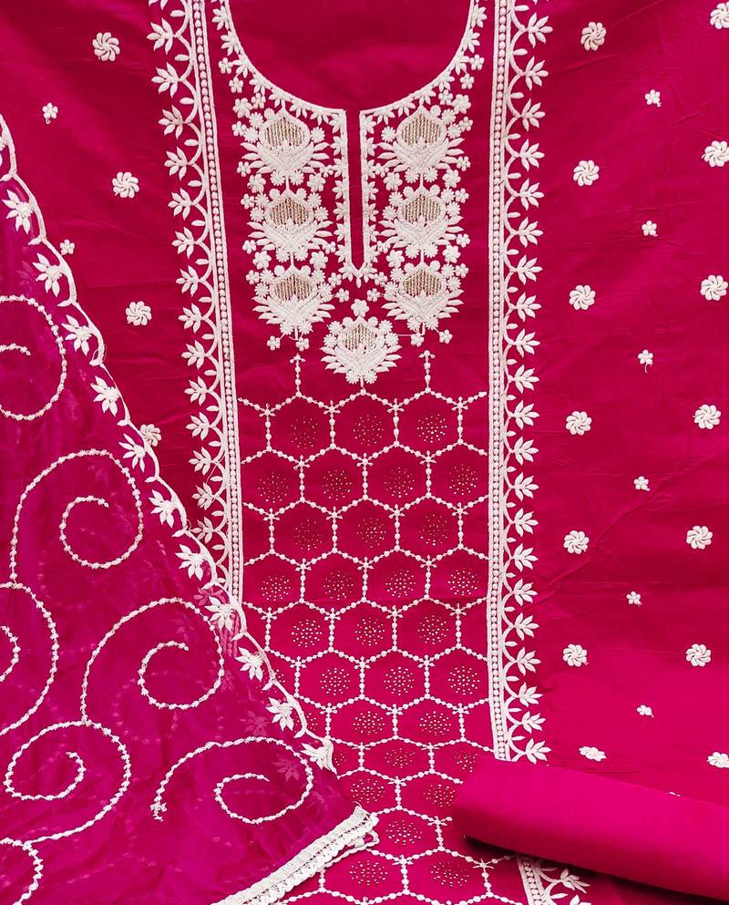 | Product Name | Magenta Chanderi Silk Embroidered Dress Material | |