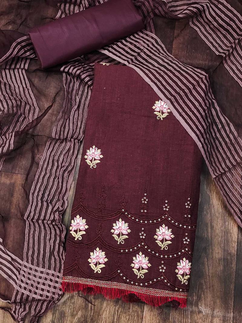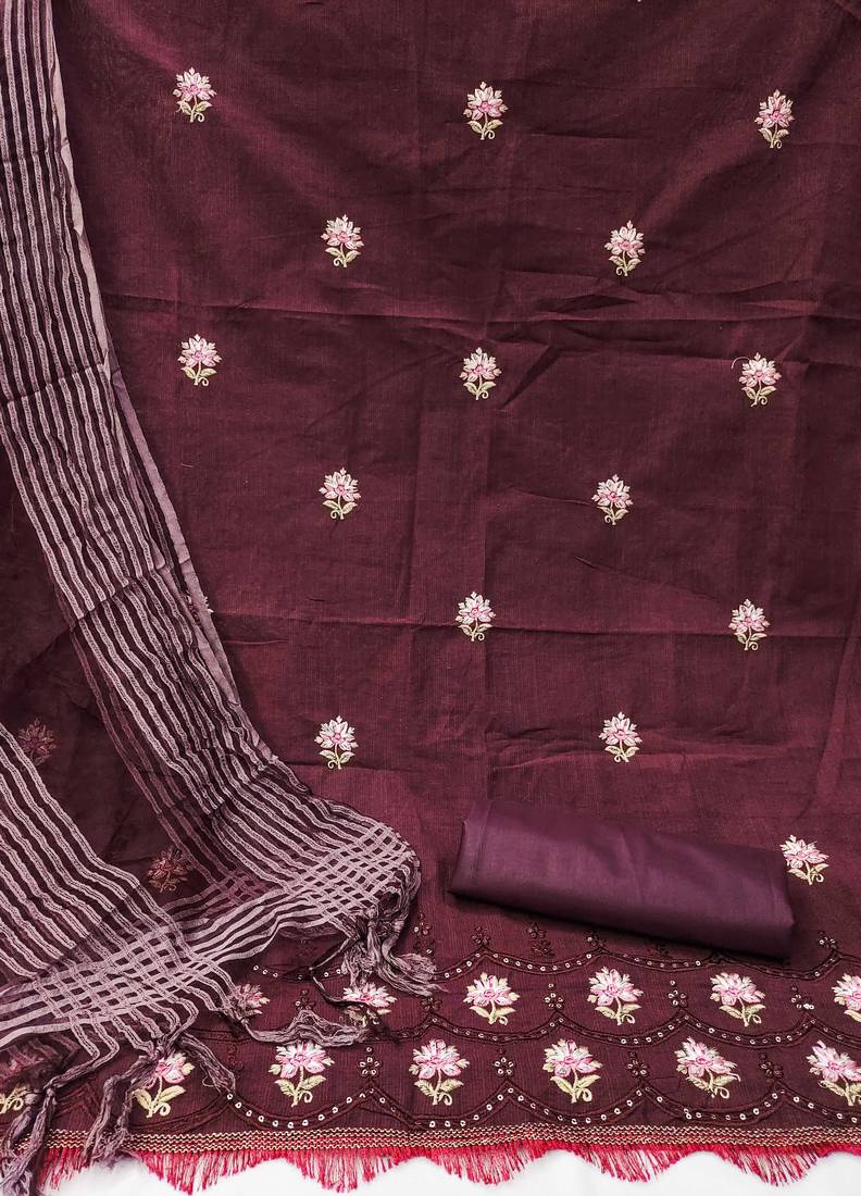 Heavy Multi Embroidery With Printed Dupatta Straight Style 2.00 Mtr Unstitched Dress Material Top Of Magenta Colour Cotton Fabric Also Including 2.00 Mtr Chudidar Style Bottom Piece Material Of Magenta Colour Cotton Fabric With 2.10 Mtr Dupatta Of Magenta Colour Nazeen Fabric