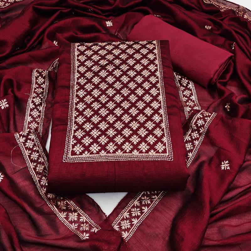 | Product Name | Magenta Silk Blend Embroidered Dress Material | |