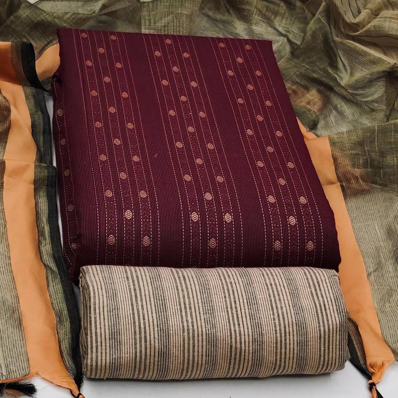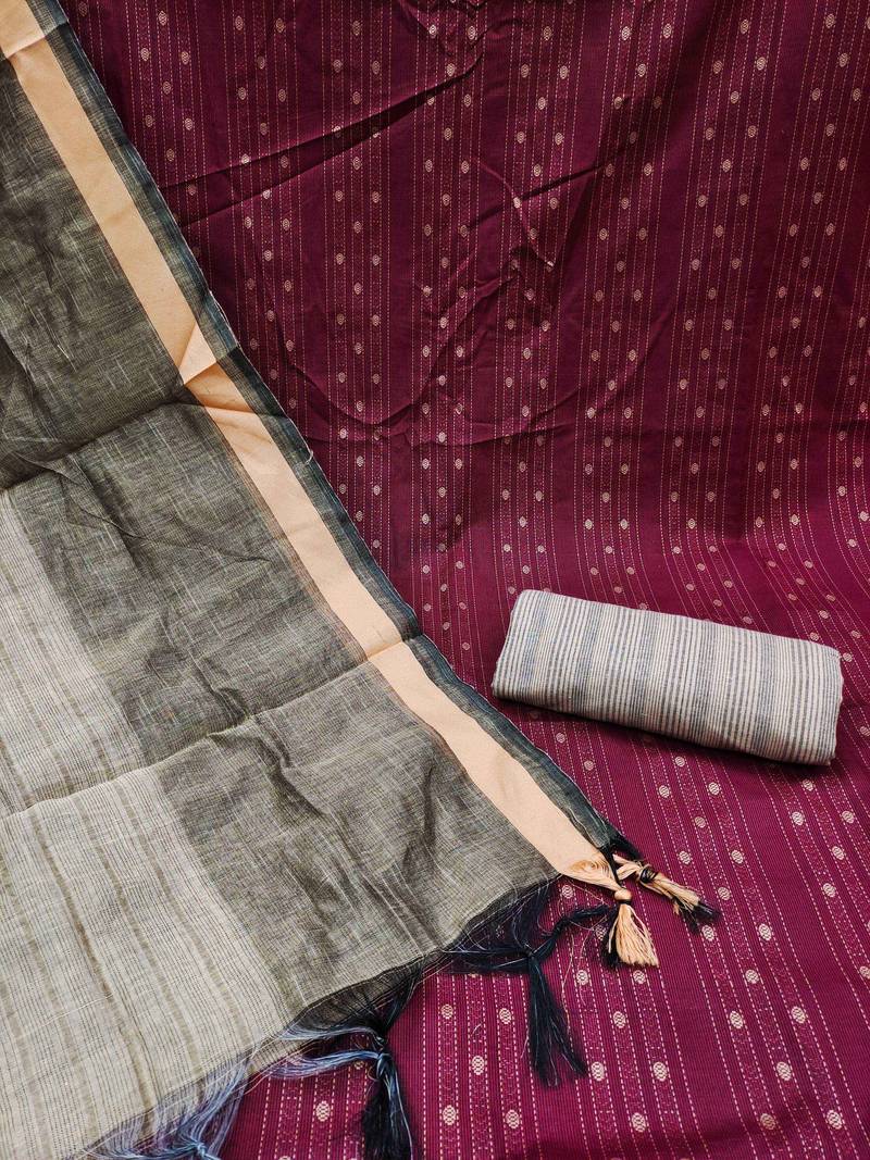 Magenta cotton woven dress material unstitched