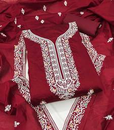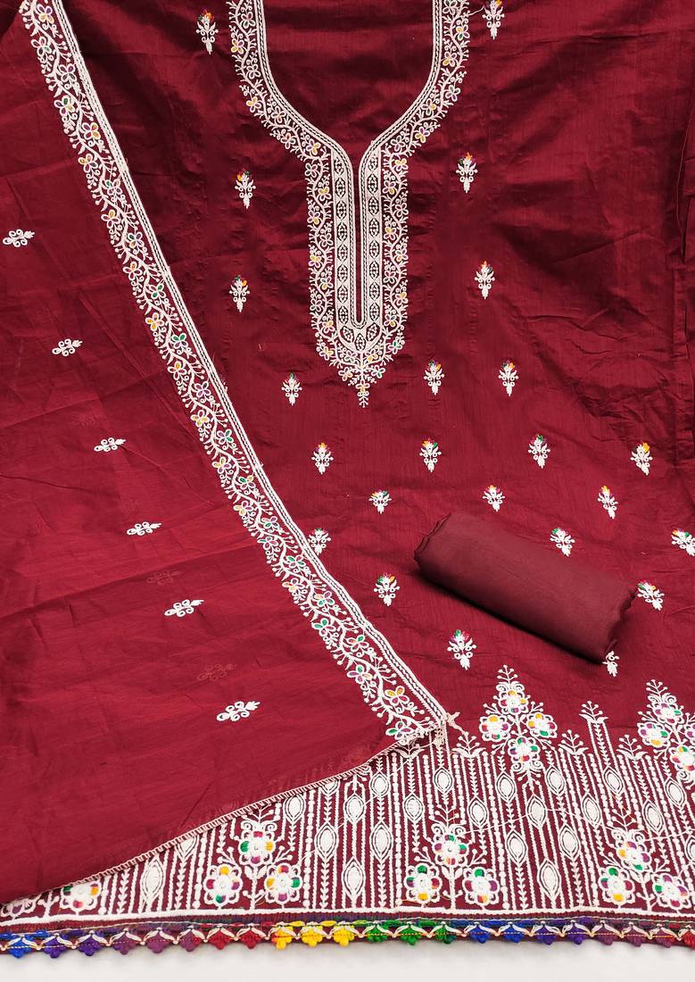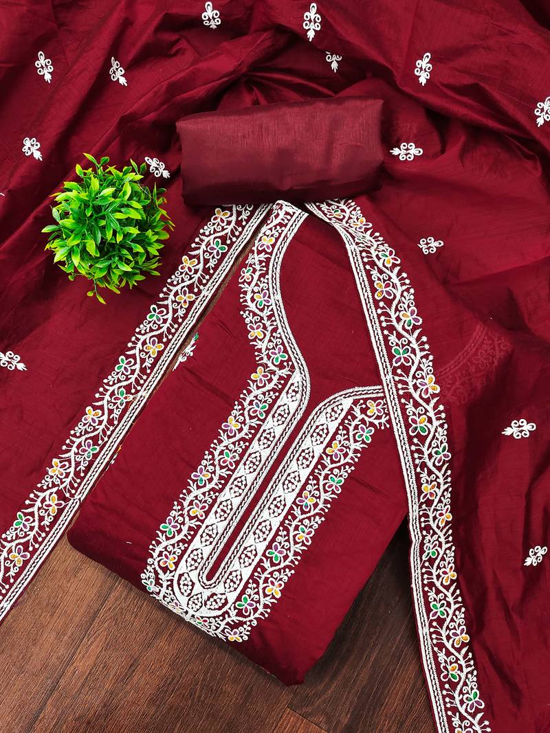 Maroon embroidered cotton semi stitched churidar dress-materials