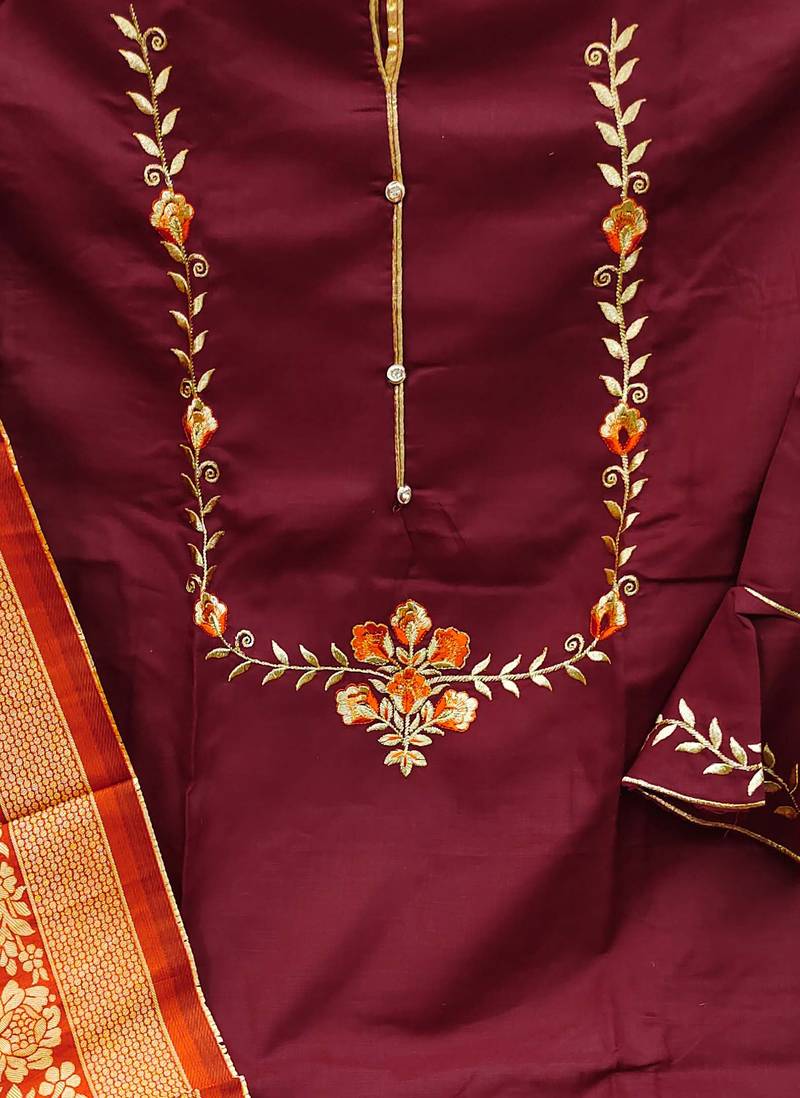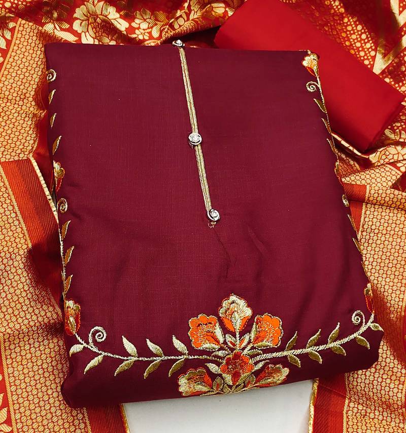 | Product Name | Maroon Cotton Embroidered Dress Material | |