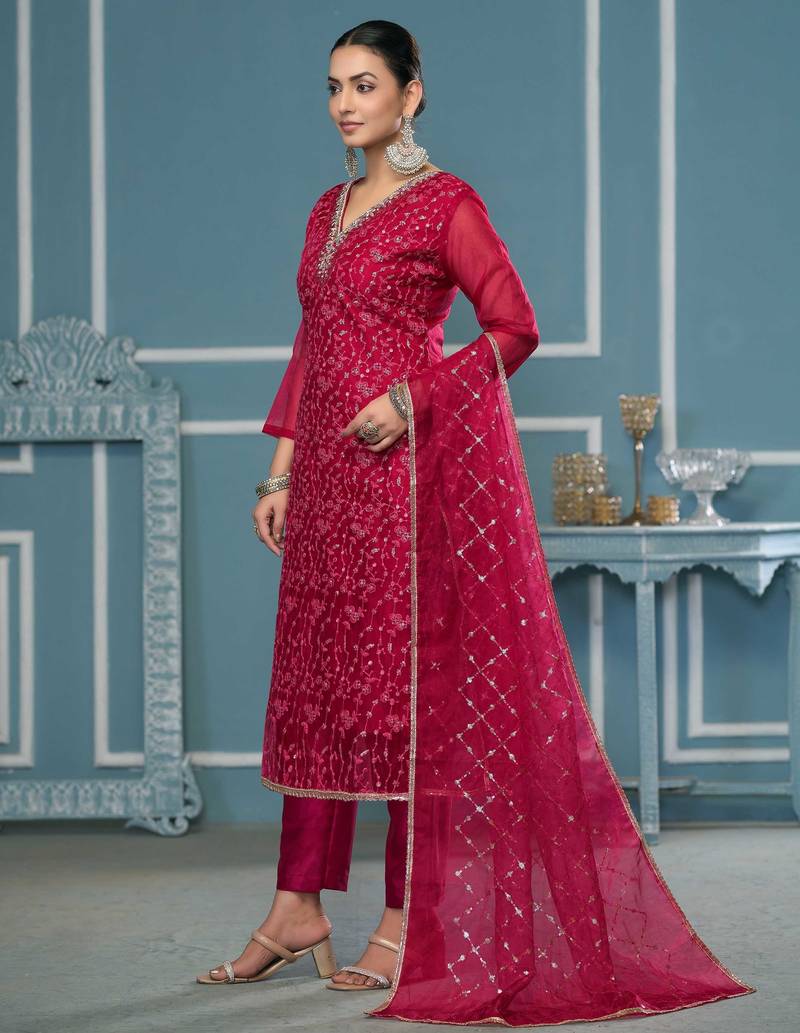 Product Name Maroon Sequins Organza Semi Stitched Churidar Dress Materials