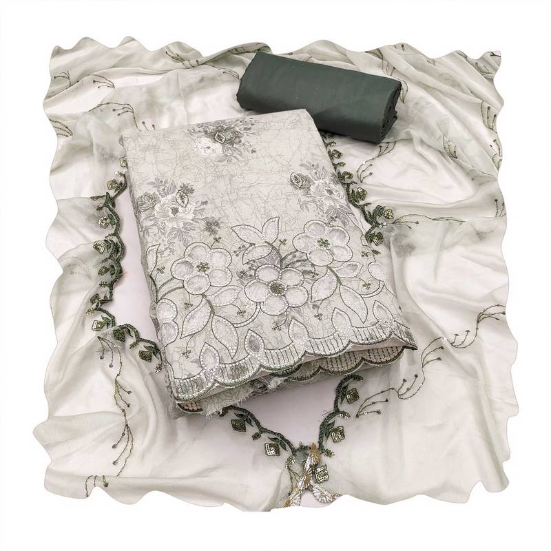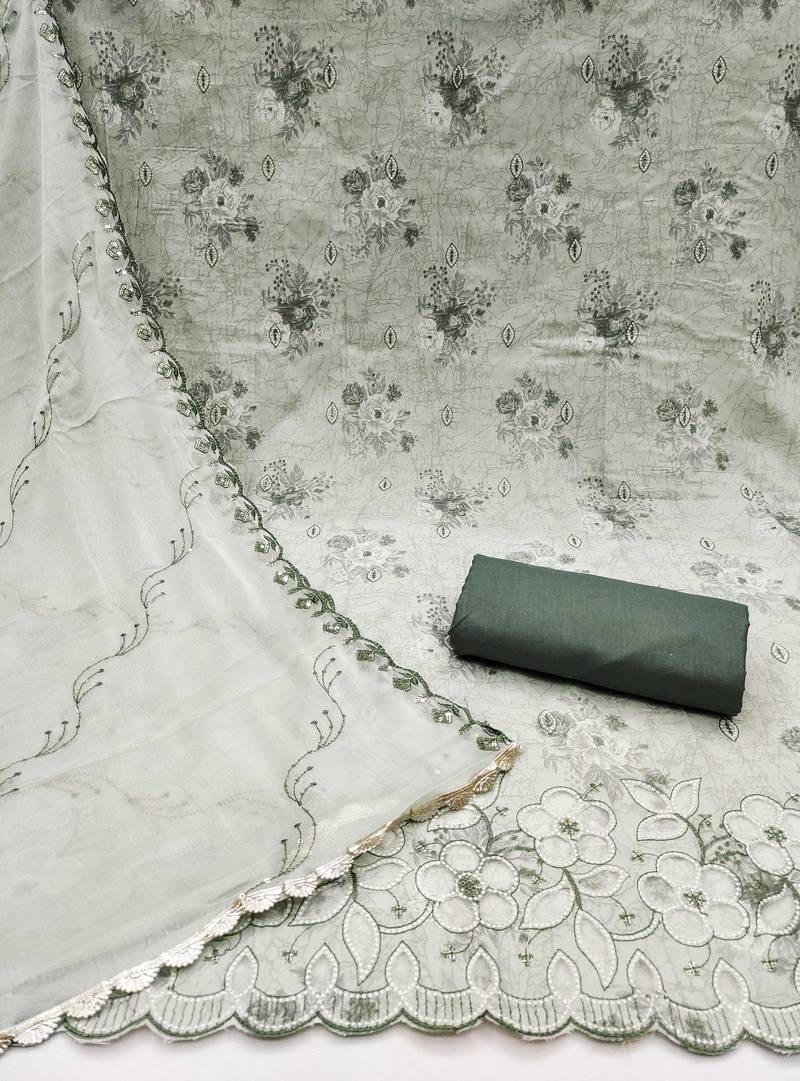 | Product Description | Artisanal Heavy Thread Embroidery Designer Digital Print And Fancy Border With Stylish Embroidered Dupatta Straight Style 2.00 Mtr Unstitched Dress Material Top Of Multi Colour Cemric Cotton Fabric Also Including 2.40 Mtr Chudidar Style Bottom Piece Material Of Green Colour Pure Cotton Fabric With 2.10 Mtr Dupatta Of Off White Colour Nazneen Fabric By Shadow & Saining Brand |