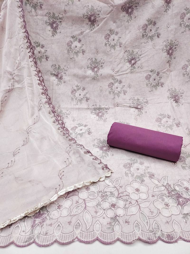 | Product Description | Opulent Heavy Thread Embroidery Designer Digital Print And Fancy Border With Stylish Embroidered Dupatta Straight Style 2.00 Mtr Unstitched Dress Material Top Of Multi Colour Cemric Cotton Fabric Also Including 2.40 Mtr Chudidar Style Bottom Piece Material Of Purple Colour Pure Cotton Fabric With 2.10 Mtr Dupatta Of Off White Colour Nazneen Fabric By Shadow & Saining Brand |