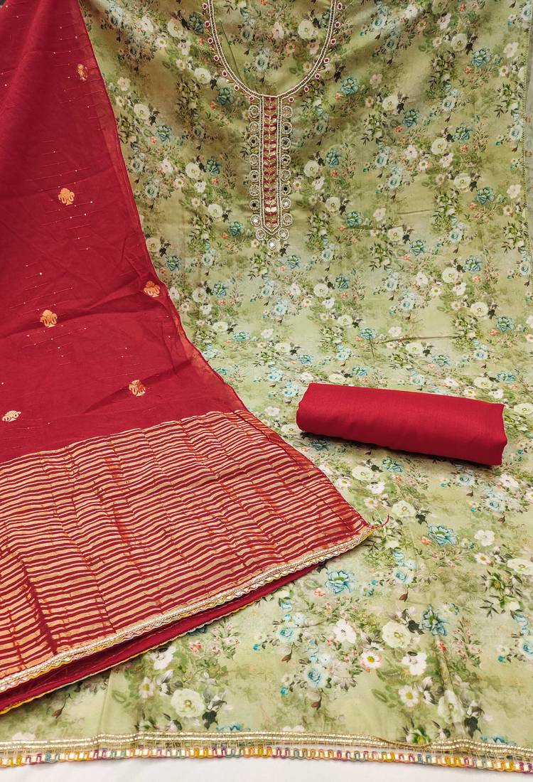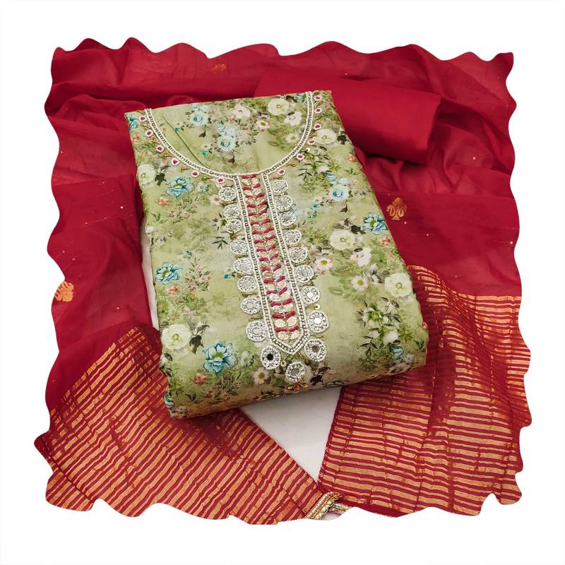 | Product Description | Curated Heavy Digital Print Handwork And Fancy Border With Designer Woven Dupatta Straight Style 2.00 Mtr Unstitched Dress Material Top Of Multi Colour Banarasi Cotton Fabric Also Including 2.40 Mtr Chudidar Style Bottom Piece Material Of Maroon Colour Rayon Fabric With 2.10 Mtr Dupatta Of Maroon Colour Soft Chanderi Banarasi Fabric By Shadow & Saining Brand |