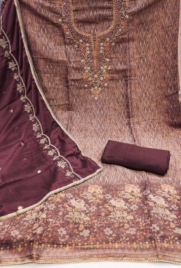 | Product Description | Signature Designer Print Heavy Handwork And Fancy Border With Stylish Embroidered Dupatta Straight Style 2.00 Mtr Unstitched Dress Material Top Of Multi Colour Cotton Silk Fabric Also Including 2.40 Mtr Chudidar Style Bottom Piece Material Of Voilet Colour Dull Santoon Fabric With 2.10 Mtr Dupatta Of Voilet Colour Nazneen Fabric By Shadow & Saining Brand |
