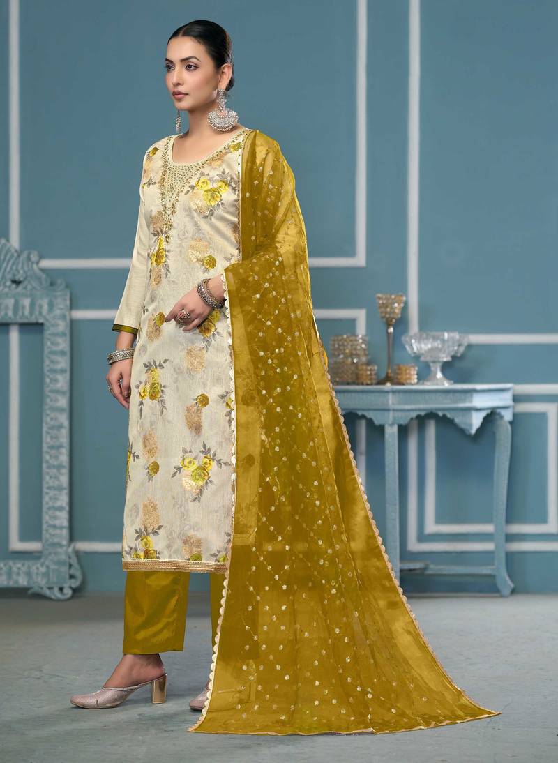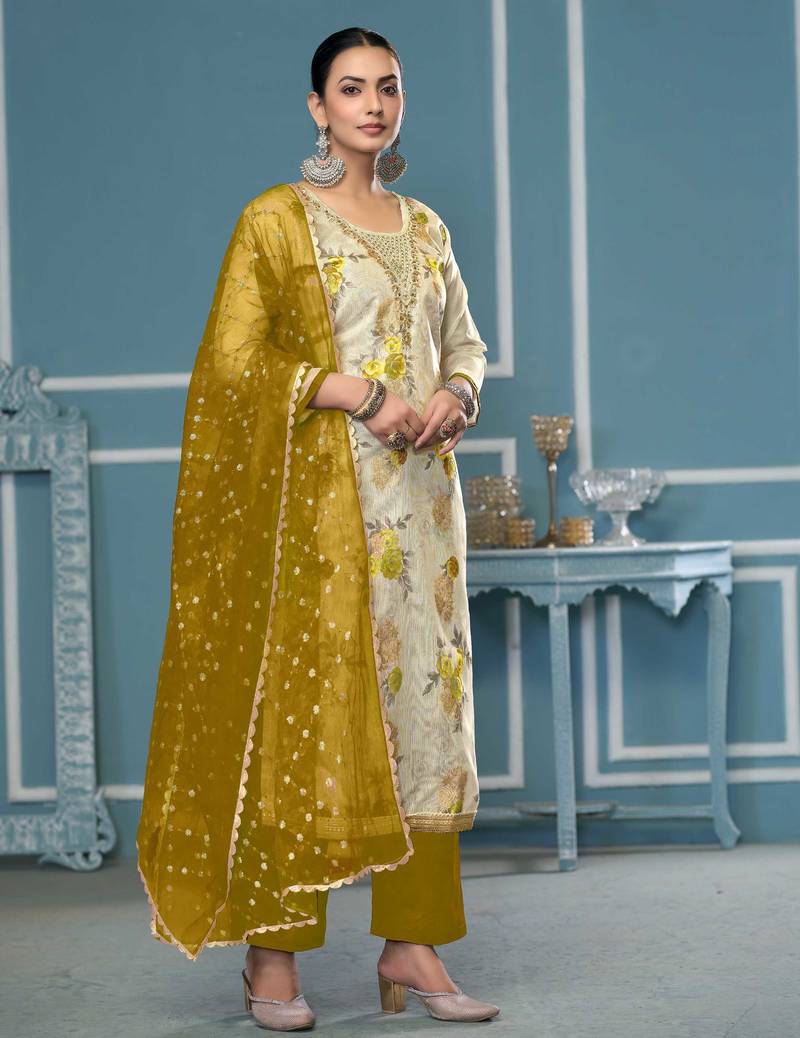 | Product Description | Limited Edition Designer Print, Hand Work And Fancy Border With Embroidered Dupatta Straight Style 2.00 Mtr Unstitched Dress Material Top Of Multi Colour Viscose Banarasi Fabric With 2 Mtr Dull Santoon As Lining Inner Fabric Also Including 3.80 Mtr Unstiched Bottom Material Of Light Green Colour Dull Santoon Fabric With 2.10 Mtr Dupatta Of Light Green Colour Organza Fabric By Shadow & Saining Brand |