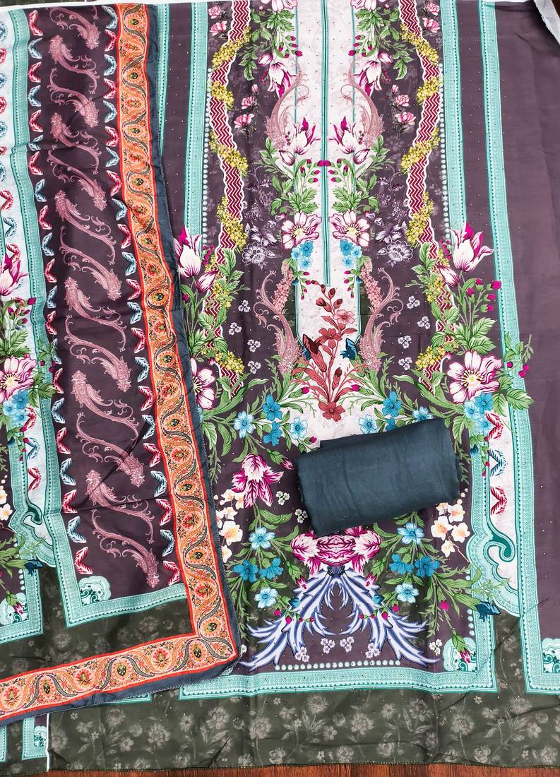 | Product Description | Regal Designer Print And Daimond Siroski Work With Stylish Printed Dupatta Straight Style 2.00 Mtr Unstitched Dress Material Top Of Multi Colour Muslin Cotton Fabric Also Including 2.00 Mtr Chudidar Style Bottom Piece Material Of Grey Colour Rayon Fabric With 2.00 Mtr Dupatta Of Multi Colour Muslin Cotton Fabric By Shadow & Saining Brand |