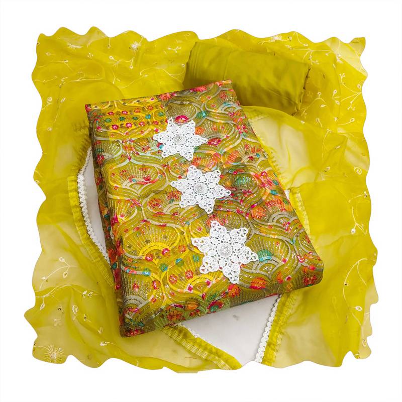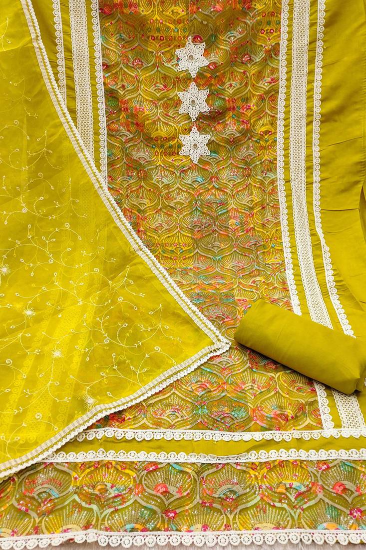 Product Name Multicolor Sequins Cotton Silk Semi Stitched Churidar Dress Materials