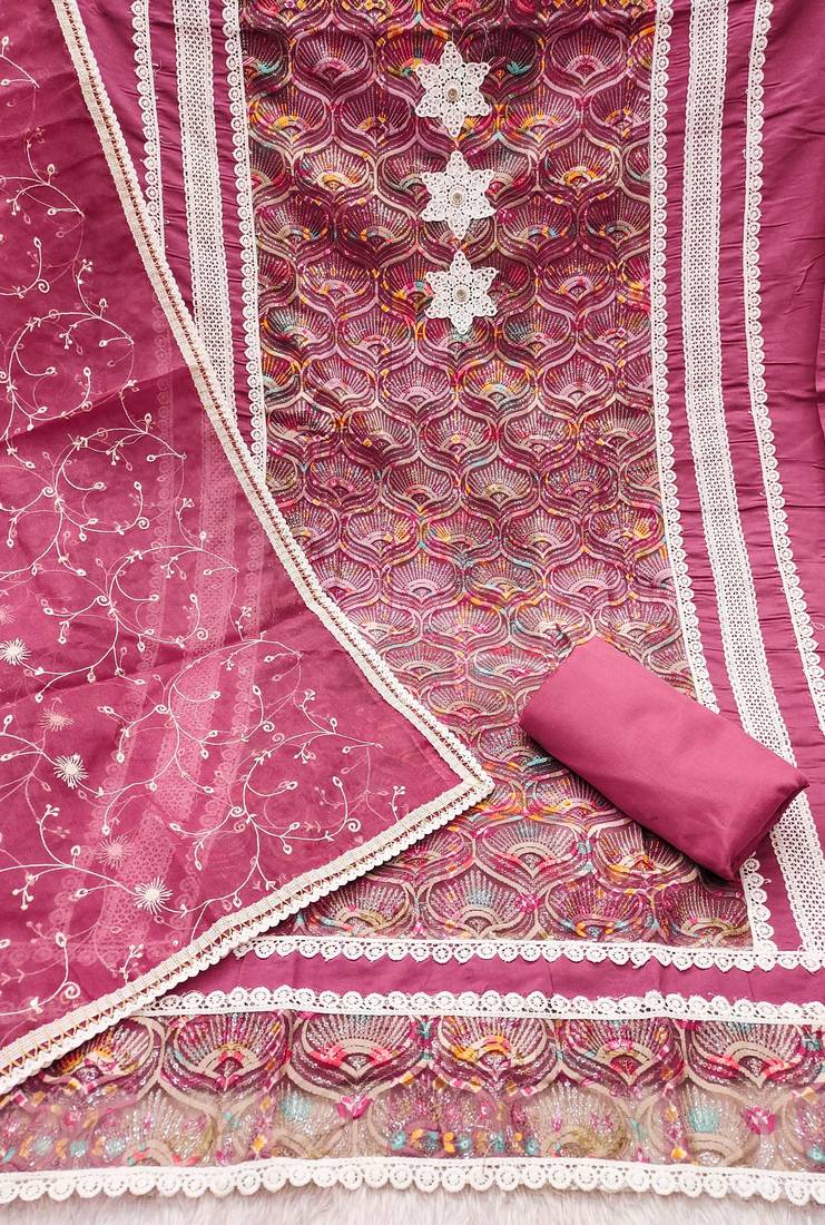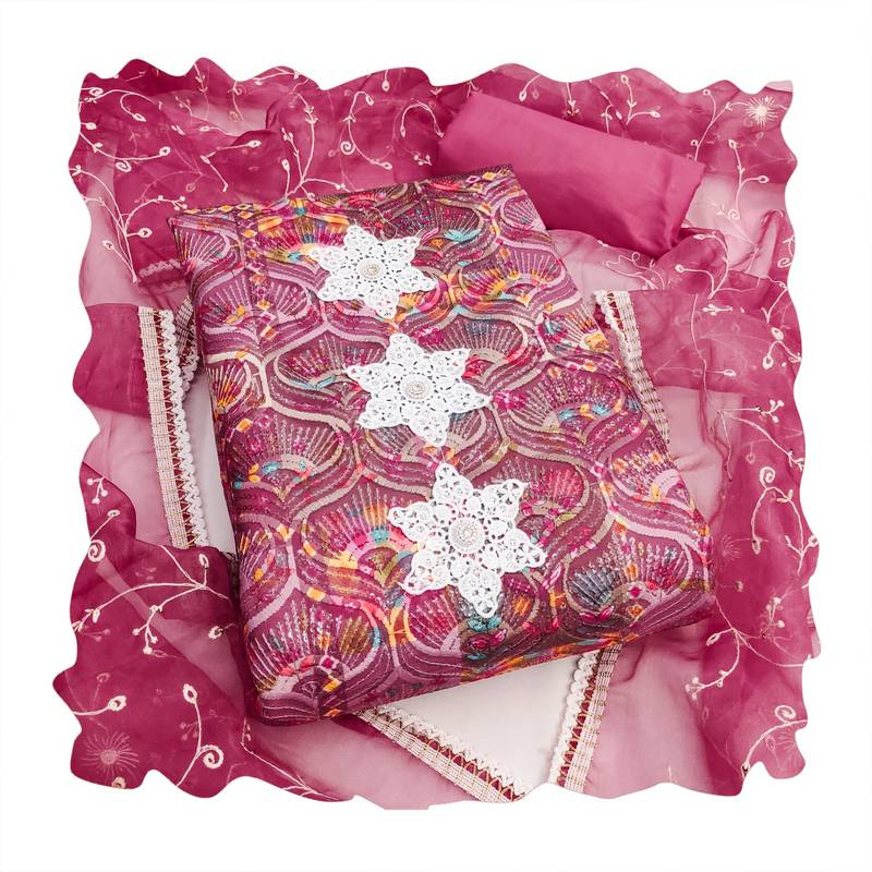 | Product Description | Colorfast Heavy Thread Sequence Embroidery Stylish Print And Fancy Border With Designer Embroidered Dupatta Straight Style 2.00 Mtr Unstitched Dress Material Top Of Multi Colour Roman Cotton Silk Fabric Also Including 2.40 Mtr Chudidar Style Bottom Piece Material Of Pink Colour Dull Santoon Fabric With 2.10 Mtr Dupatta Of Pink Colour Nazneen Fabric By Shadow & Saining Brand |