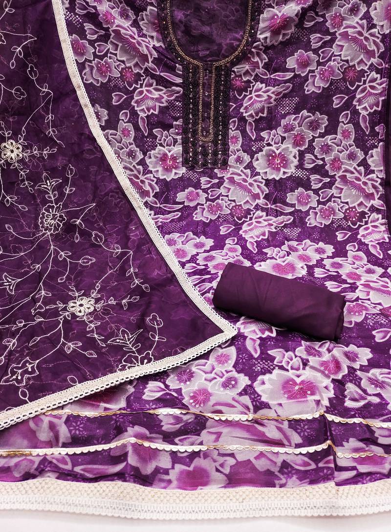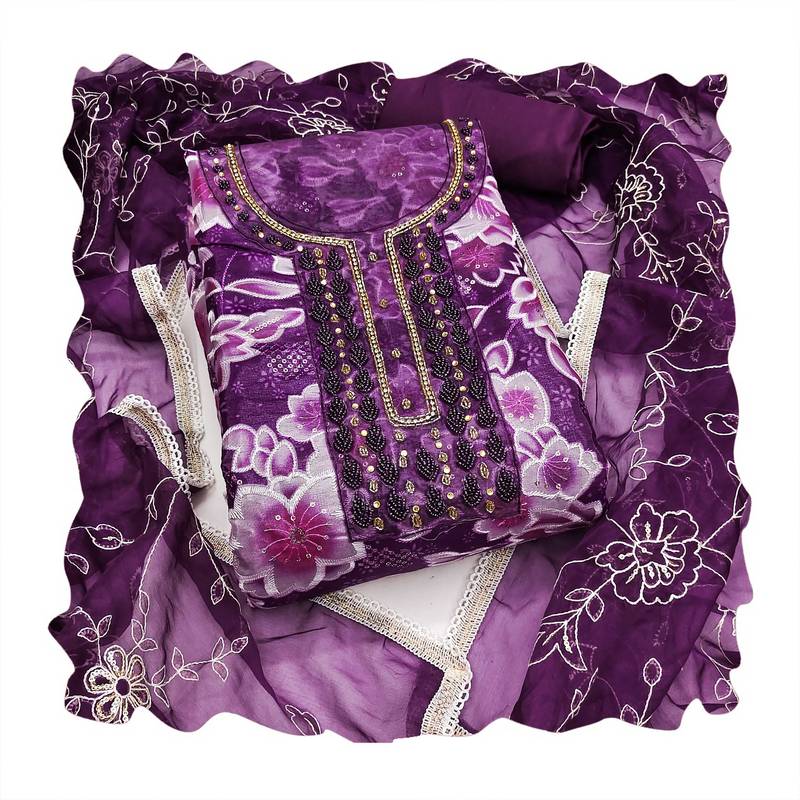 | Product Description | Luxury Heavy Thread Sequence Digital Position Print Embroidery Handwork Neck And Fancy Border With Designer Embroidered Dupatta Straight Style 2.00 Mtr Unstitched Dress Material Top Of Multi Colour Organja Fabric With 2 Mtr Dull Santoon As Lining Inner Fabric Also Including 3.80 Mtr Unstiched Bottom Material Of Purple Colour Dull Santoon Fabric With 2.10 Mtr Dupatta Of Purple Colour Organja Fabric By Shadow & Saining Brand |