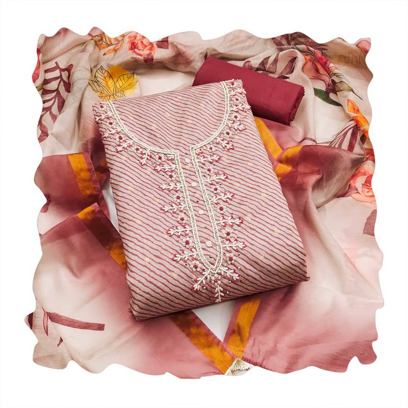 | Product Description | Sophisticated Designer Weaving,Handwork And Fancy Border With Stylish Digital Printed Dupatta Straight Style 2.00 Mtr Unstitched Dress Material Top Of Multi Colour Modal Butti Cotton Fabric With 2 Mtr Dull Santoon As Lining Inner Fabric Also Including 3.80 Mtr Unstiched Bottom Material Of Pink Colour Dull Santoon Fabric With 2.10 Mtr Dupatta Of Multi Colour Cotton Fabric By Shadow & Saining Brand |