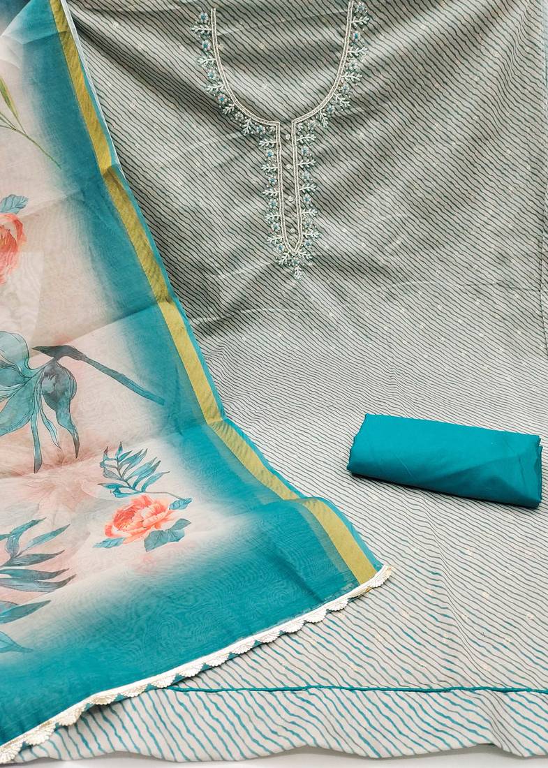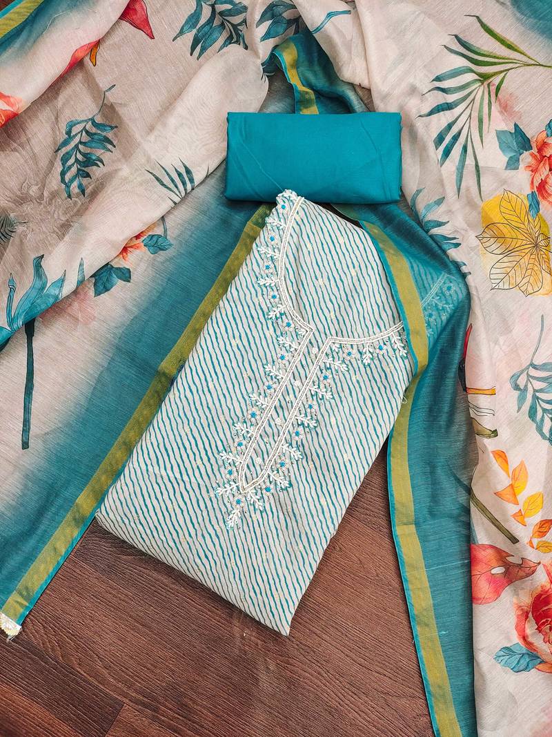 | Product Description | Regal Designer Weaving,Handwork And Fancy Border With Stylish Digital Printed Dupatta Straight Style 2.00 Mtr Unstitched Dress Material Top Of Multi Colour Modal Butti Cotton Fabric With 2 Mtr Dull Santoon As Lining Inner Fabric Also Including 3.80 Mtr Unstiched Bottom Material Of Sky Blue Colour Dull Santoon Fabric With 2.10 Mtr Dupatta Of Multi Colour Cotton Fabric By Shadow & Saining Brand |