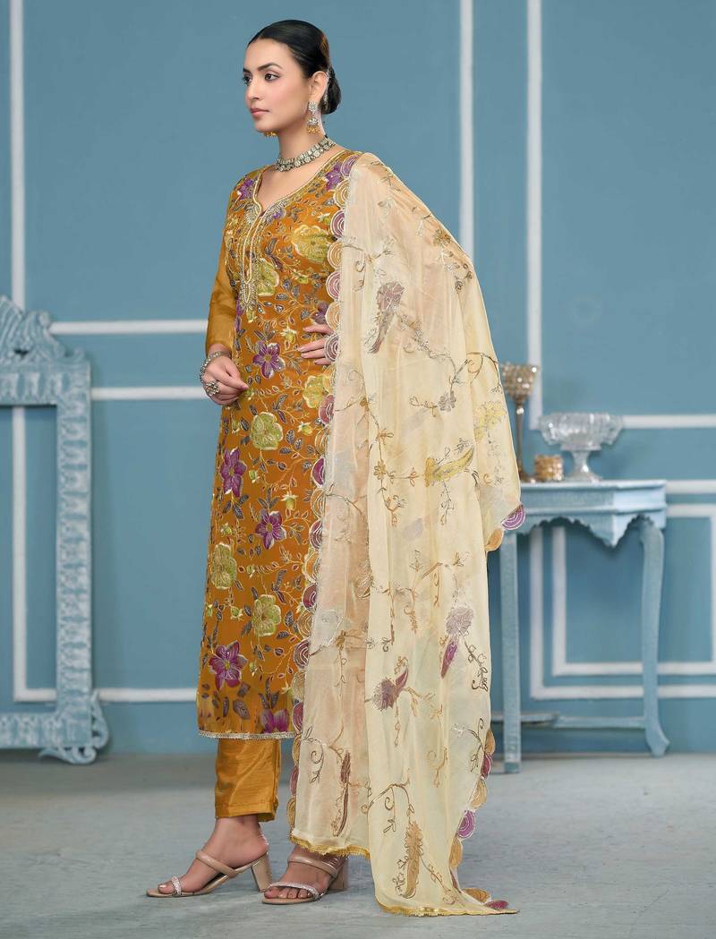 | Product Description | Artisanal Heavy Thread Sequence Embroidered And Fancy Border With Designer Burs Embroidered Dupatta Straight Style 2.00 Mtr Unstitched Dress Material Top Of Mustered Colour Viscose Organja Fabric With 2 Mtr Dull Santoon As Lining Inner Fabric Also Including 3.80 Mtr Unstiched Bottom Material Of Mustered Colour Dull Santoon Fabric With 2.10 Mtr Dupatta Of Multi Colour Nazneen Fabric By Shadow & Saining Brand |