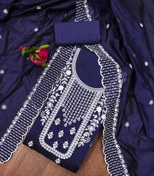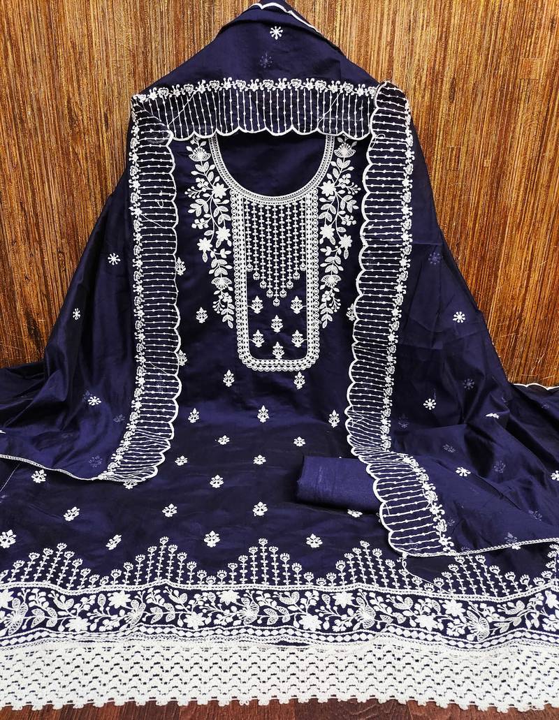 Navy blue cotton embroidered dress material unstitched