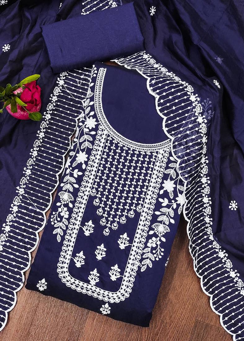 | Product Name | Navy Blue Cotton Embroidered Dress Material | |