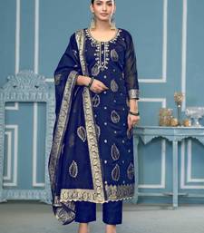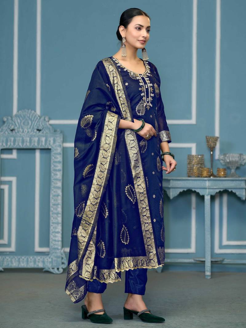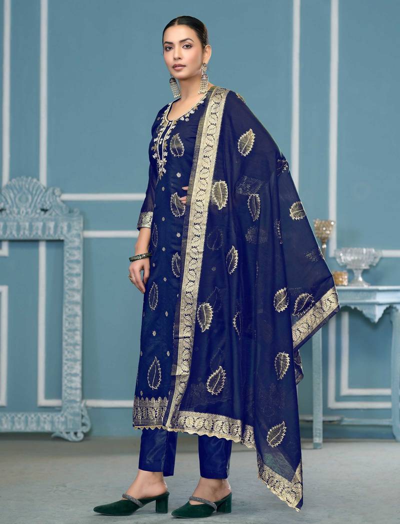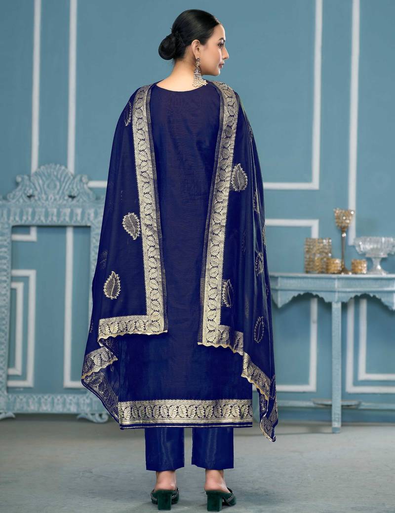 Navy-blue woven banarasi semi stitched churidar dress-materials