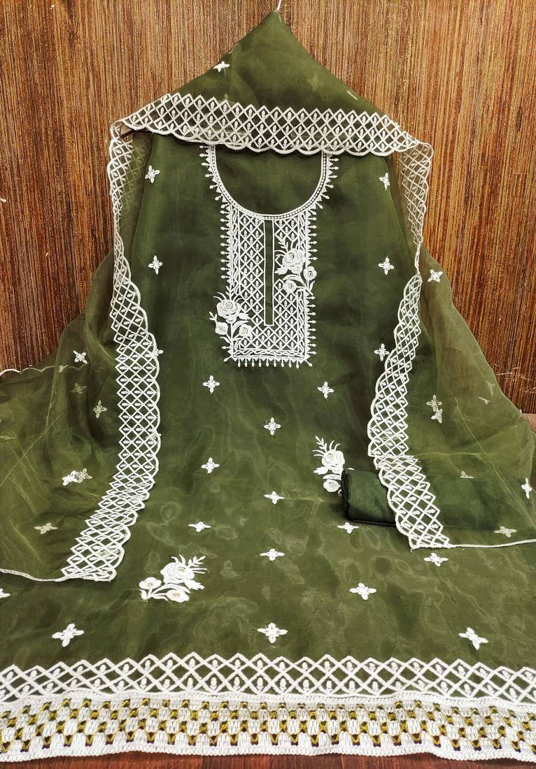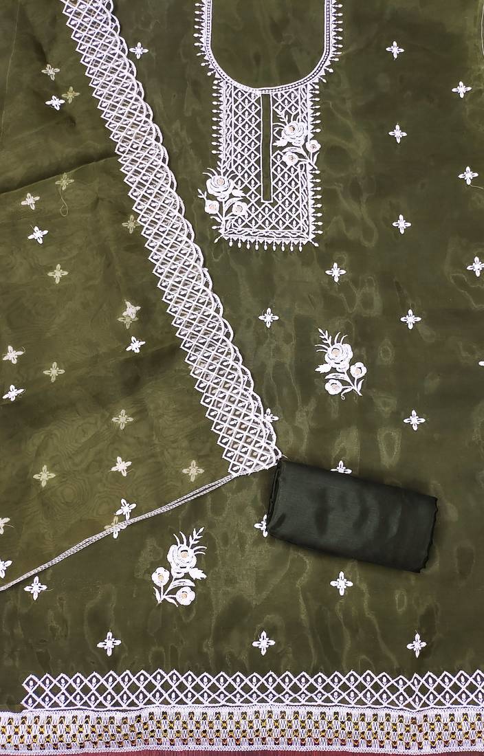 | Product Name | Olive Organza Embroidered Dress Material | |