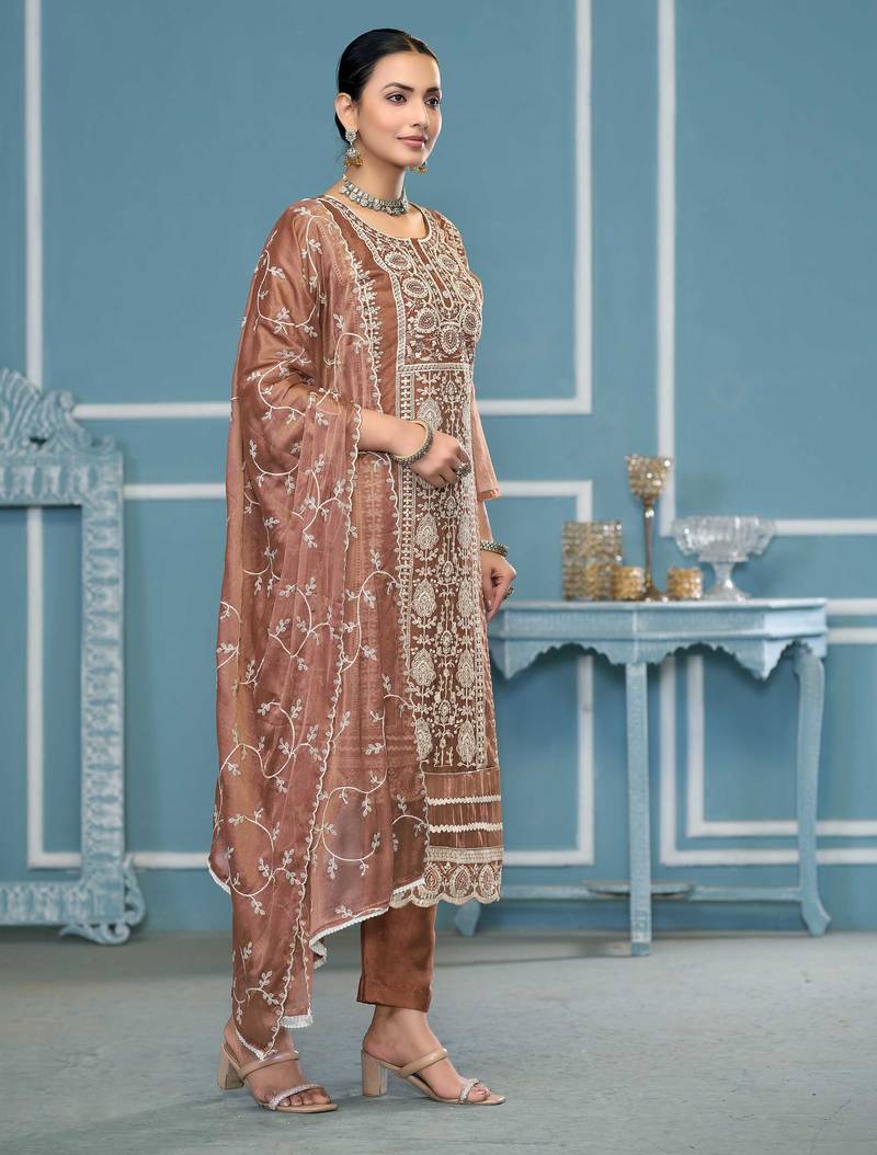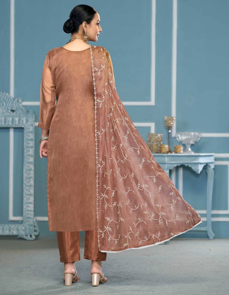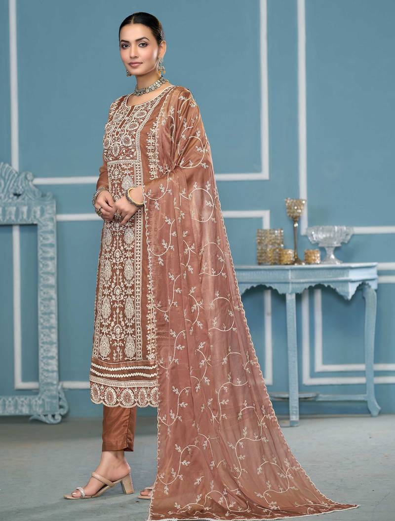 | Product Description | Minimal Designer Thread Embroidery With Daimond Work Along Fancy Border And With Stylish Embroidery Dupatta Work Straight Style 2.05 Mtr Unstitched Dress Material Top Of Rust Colour Viscose Organja Fabric With 2 Mtr Heavy Santoon As Lining Inner Fabric Also Including 3.80 Mtr Unstiched Bottom Material Of Rust Colour Heavy Santoon Fabric With 2.05 Mtr Dupatta Of Rust Colour Nasmeen Fabric By Shadow & Saining Brand |