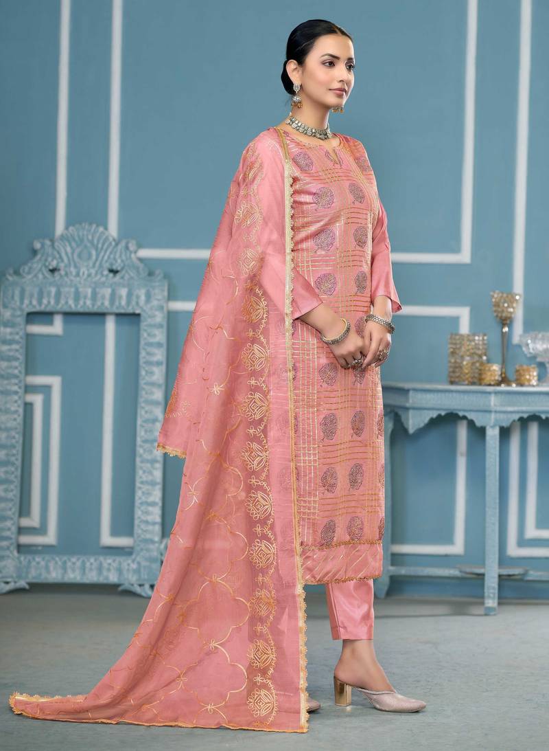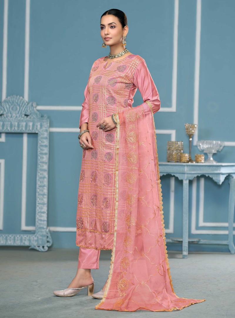 | Product Name | Peach Embroidered Cotton Silk Semi Stitched Churidar Dress Materials | |