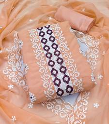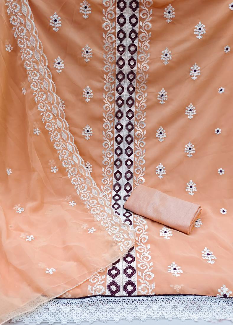 Peach organza embroidered dress material unstitched