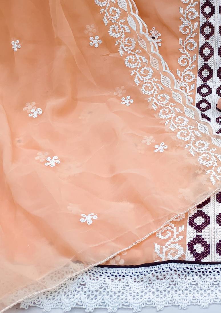 | Product Name | Peach Organza Embroidered Dress Material | |