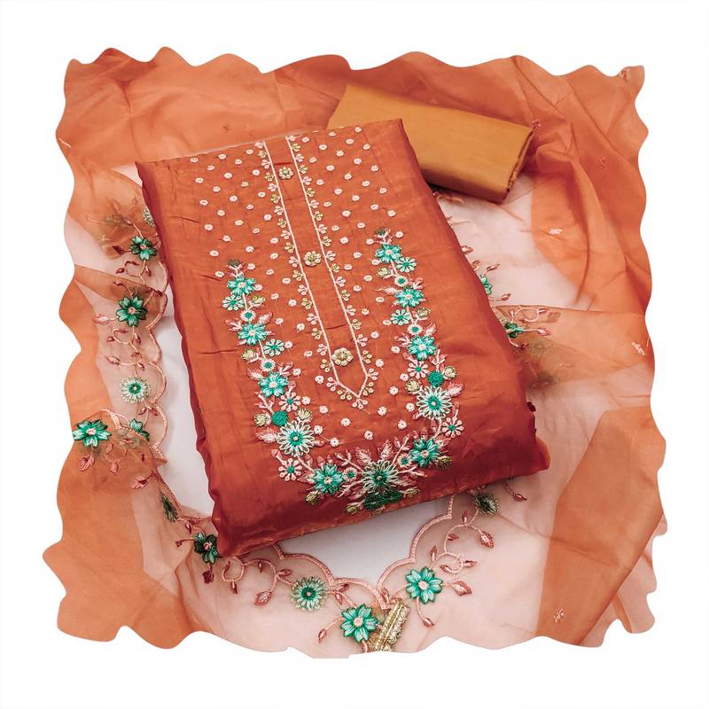 Product Name Peach Embroidered Viscose Semi Stitched Churidar Dress Materials