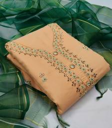 Peach chanderi hand embroidery dress material unstitched