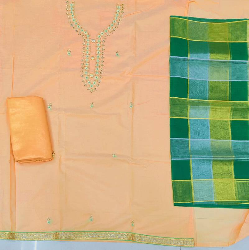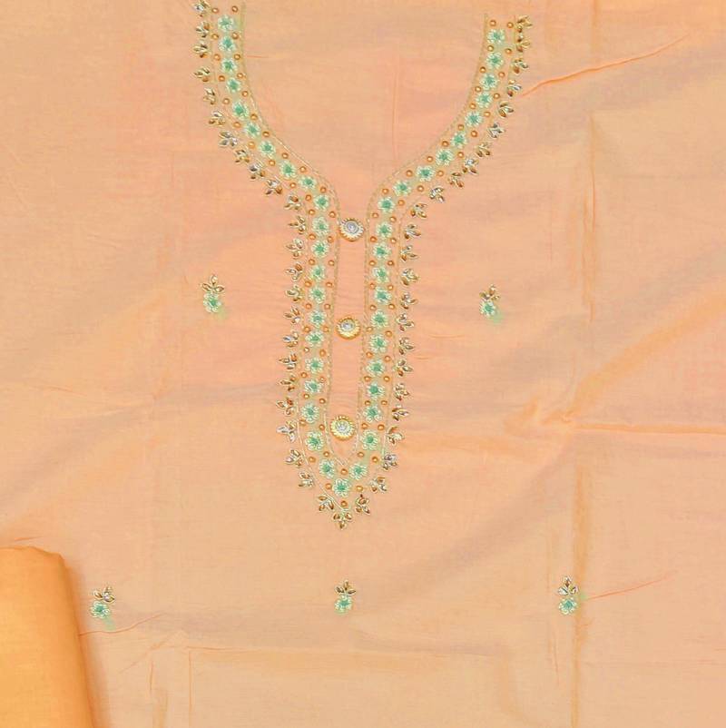 Product Name Peach Chanderi Hand Embroidery Dress Material