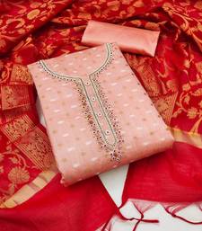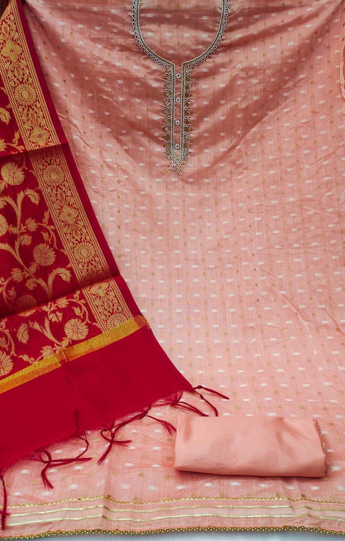 Peach jacquard hand embroidery dress material unstitched