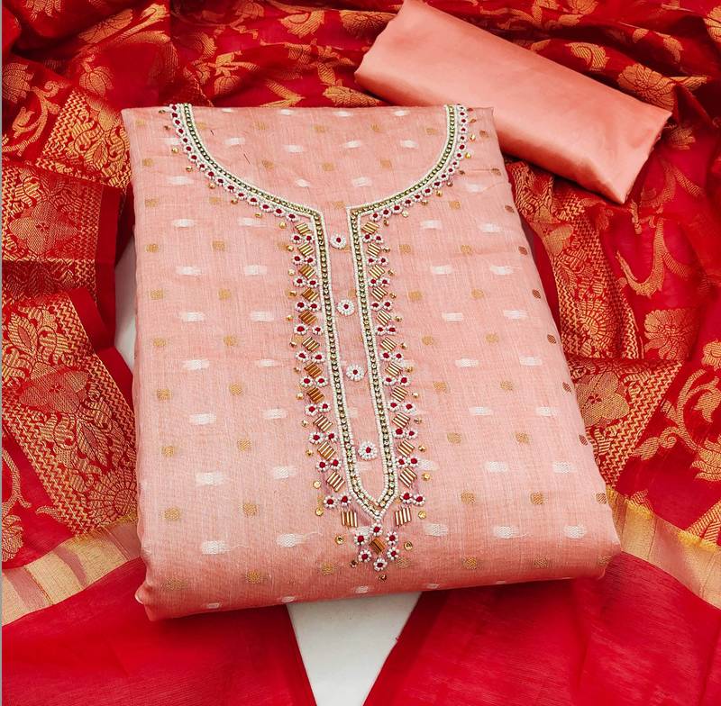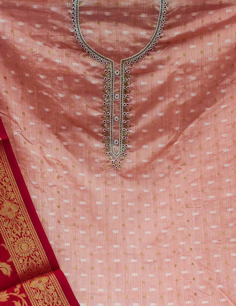 | Product Name | Peach Jacquard Hand Embroidery Dress Material | |