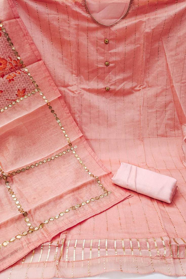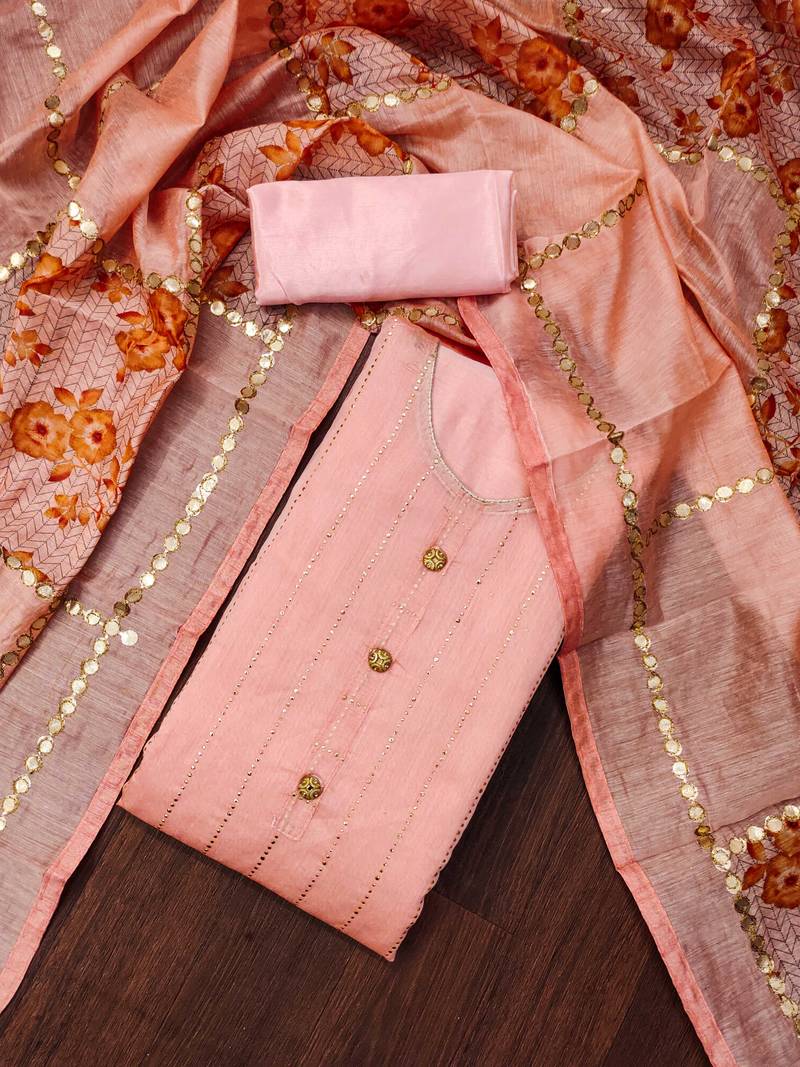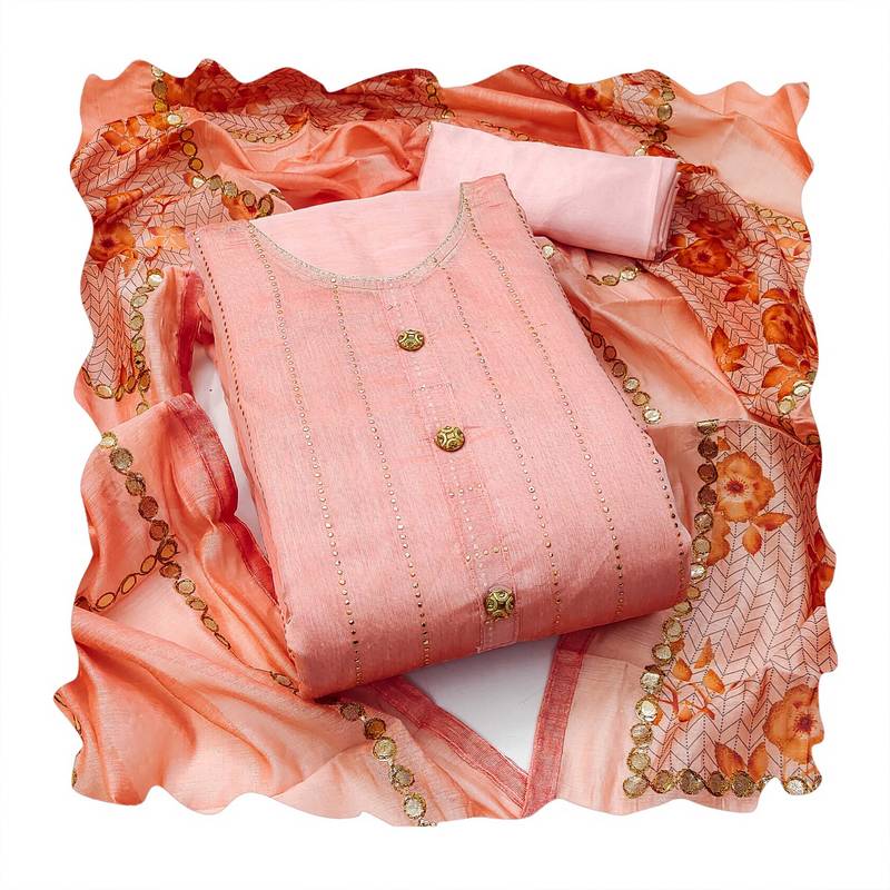 | Product Description | Easy Care Heavy Foil Butti Work And Fancy Border With Designer Digital Printed Work Dupatta Straight Style 2.00 Mtr Unstitched Dress Material Top Of Peach Colour Modal Fabric With 2 Mtr Dull Santoon As Lining Inner Fabric Also Including 3.80 Mtr Unstiched Bottom Material Of Peach Colour Dull Santoon Fabric With 2.10 Mtr Dupatta Of Peach Colour Cotton Fabric By Shadow & Saining Brand |