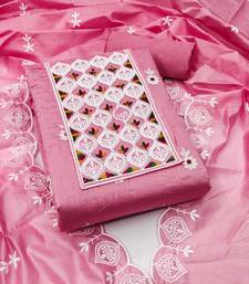 Pink embroidered cotton semi stitched churidar dress-materials