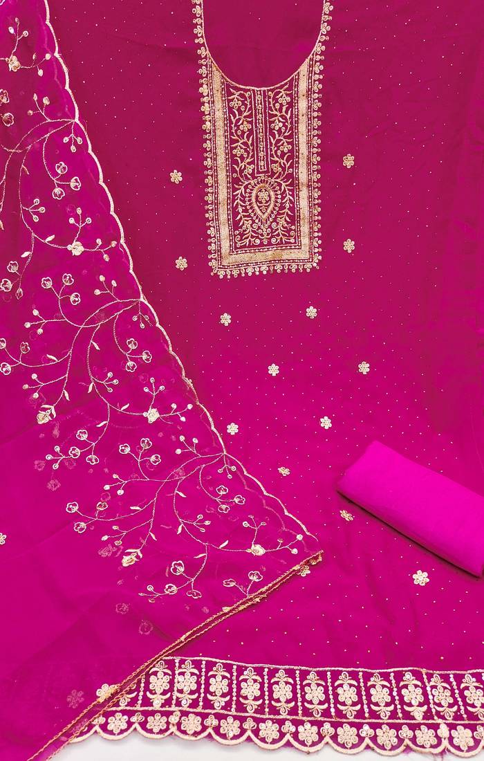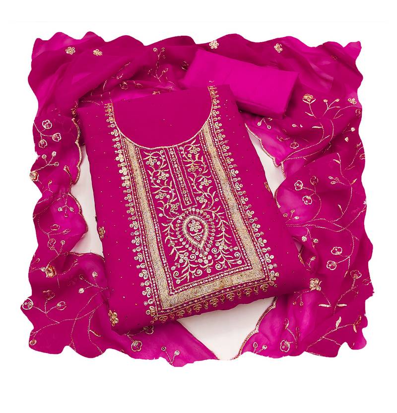 | Product Description | Designer Heavy Thread Daimond Embroidery And Fancy Border With Embroidered Dupatta Straight Style 1.90 Mtr Unstitched Dress Material Top Of Pink Colour Georgette Fabric With 2 Mtr Santoon As Lining Inner Fabric Also Including 3.80 Mtr Unstiched Bottom Material Of Pink Colour Santoon Fabric With 2.10 Mtr Dupatta Of Pink Colour Georgette Fabric By Shadow & Saining Brand |